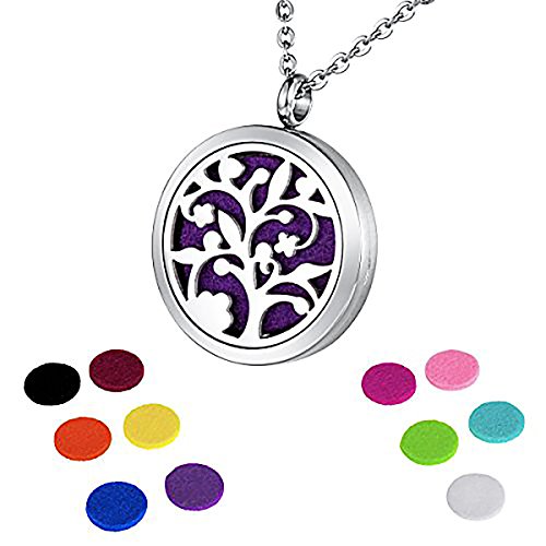 HOUSWEETY 生命の樹 レディース アロマペンダント ネックレス 丸形 ロケット 透かし彫りデザイン ステンレス製 色:シルバー 30mm