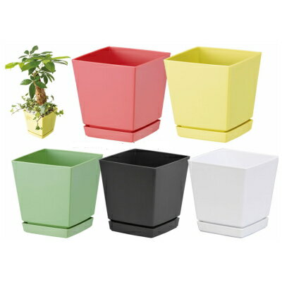 プラ鉢 クエンチローポット(プレート付) 5号 ブラック 鉢皿付き 10個組【大和プラ販 ヤマトプラスチック鉢 角鉢受皿 4903266721671】