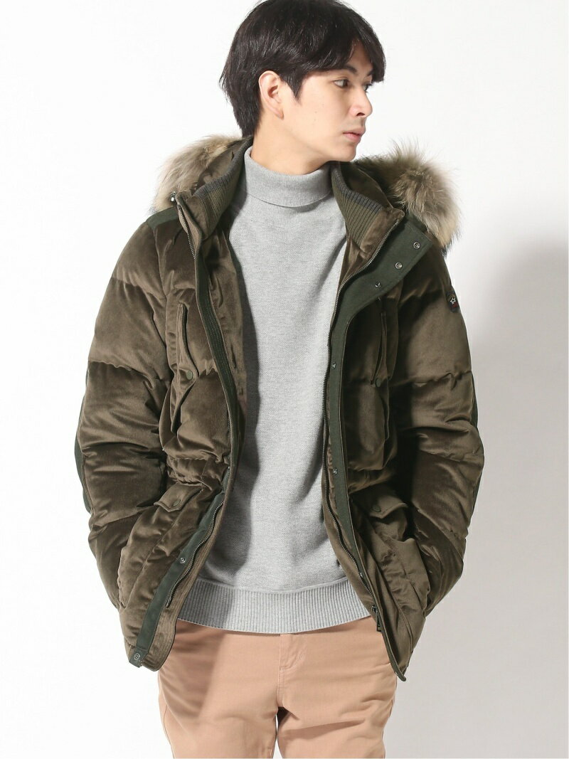 【SALE/50%OFF】PAUL&SHARK ファーフード付コーデュロイダウンジャケット ナノユニバース コート/ジャケット ダウンジャケット カーキ【RBA_E】【送料無料】