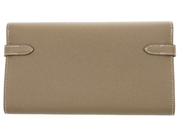 エルメス 長財布 ケリーウォレット ロング 二つ折り長財布 エトゥープ×シルバー金具 ヴォーエプソン C刻印 HERMES 財布