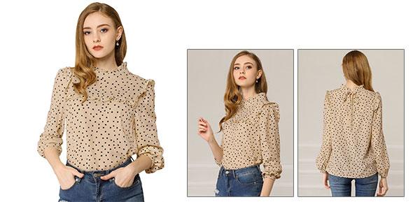 商品詳細 特徴 【属性1】この甘いドット柄のブラウスはフリルが付いて魅力的です。