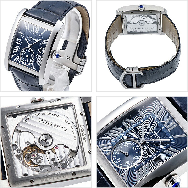 商品情報 モデル タンクMC Ref WSTA0010 状態 Used サイズ メンズ ケース直径44.0mm×34.3mm素材SSカラーブルーダイヤルギョーシェインデックスローマベゼルベルトレザームーブメント自動巻き機能デイト表示 シースルーバック(裏スケルトン)備考Dバックル自社キャリバー搭載モデル付属品:保証書(2016年)・BOX・冊子※革ベルトは純正ですが使用感が見られます。