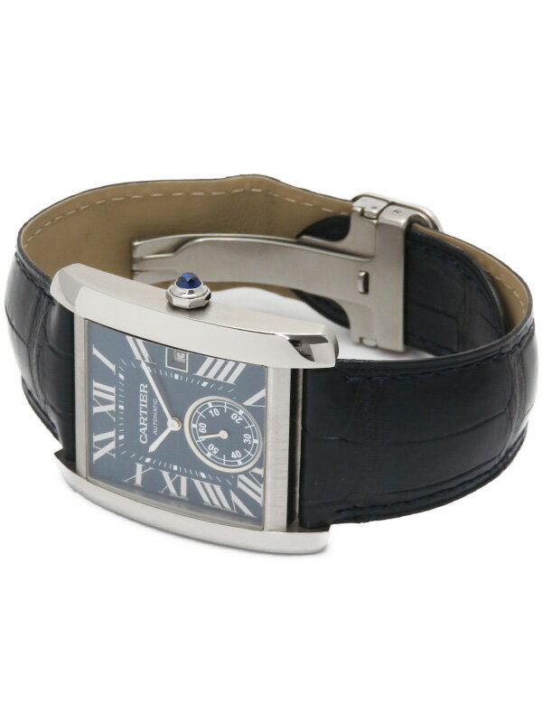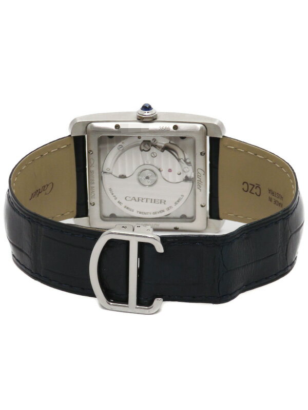 【Cartier】【裏スケ】【仕上済】カルティエ『タンクMC』WSTA0010 メンズ 自動巻き 6ヶ月保証【中古】 名 称 タンクMC 型 番 WSTA0010(3589) 年 式 不明 タイプ メンズ カラー ブルー 種 類 自動巻き時計 日差(平置) +3秒(使用状況により変化します) 材 質 ステンレス(バックル:純正品含む)/レザー(純正品)/ガラス風防 サイズ ケース:約43×34mm(ラグ含む・リューズ含まず) 腕周り:最大約20cm ギャランティー 国内販売店 2019/11/22 付属品 外箱、内箱、ギャランティー 保証期間 6ヶ月保証 ランク AB品 状 態 使用感や傷は見られますが全体的に状態の良い中古商品です。