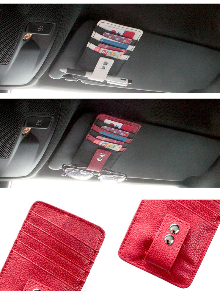 レザー調 サングラスホルダー カードホルダー サンバイザー サングラス ホルダー カード ペン 文房具 眼鏡 めがね メガネ 車内収納 車用品 1個 送料無料