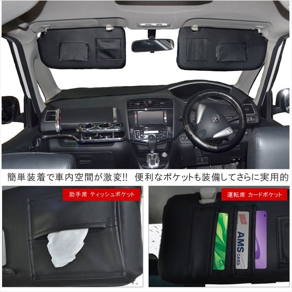 セレナ C26 後期 パーツ ライダー 前期 サンバイザーカバー ブラック 内装 カスタム サンバイザー 車 収納 カバー ポケット